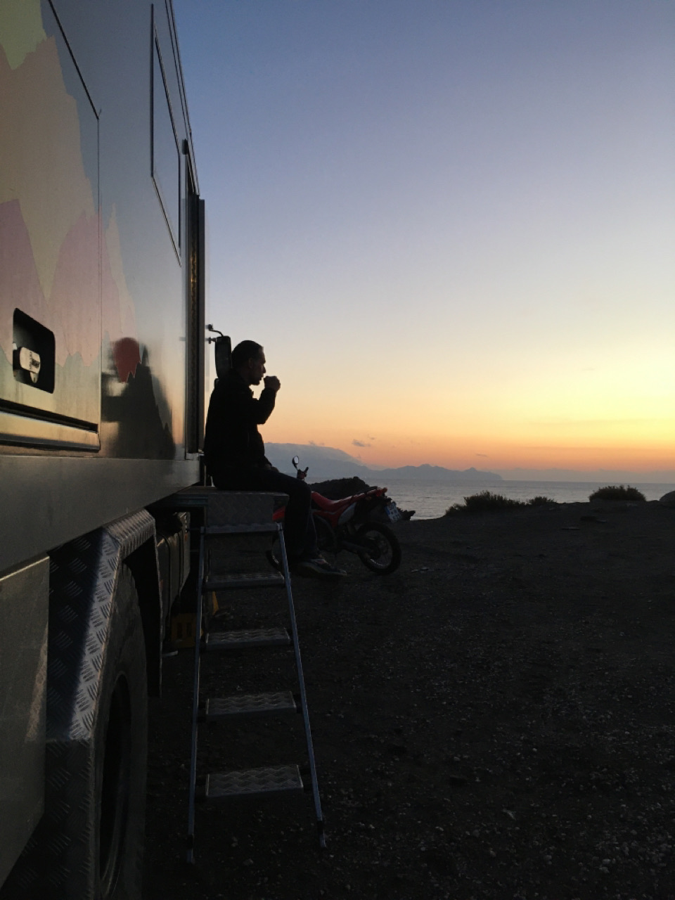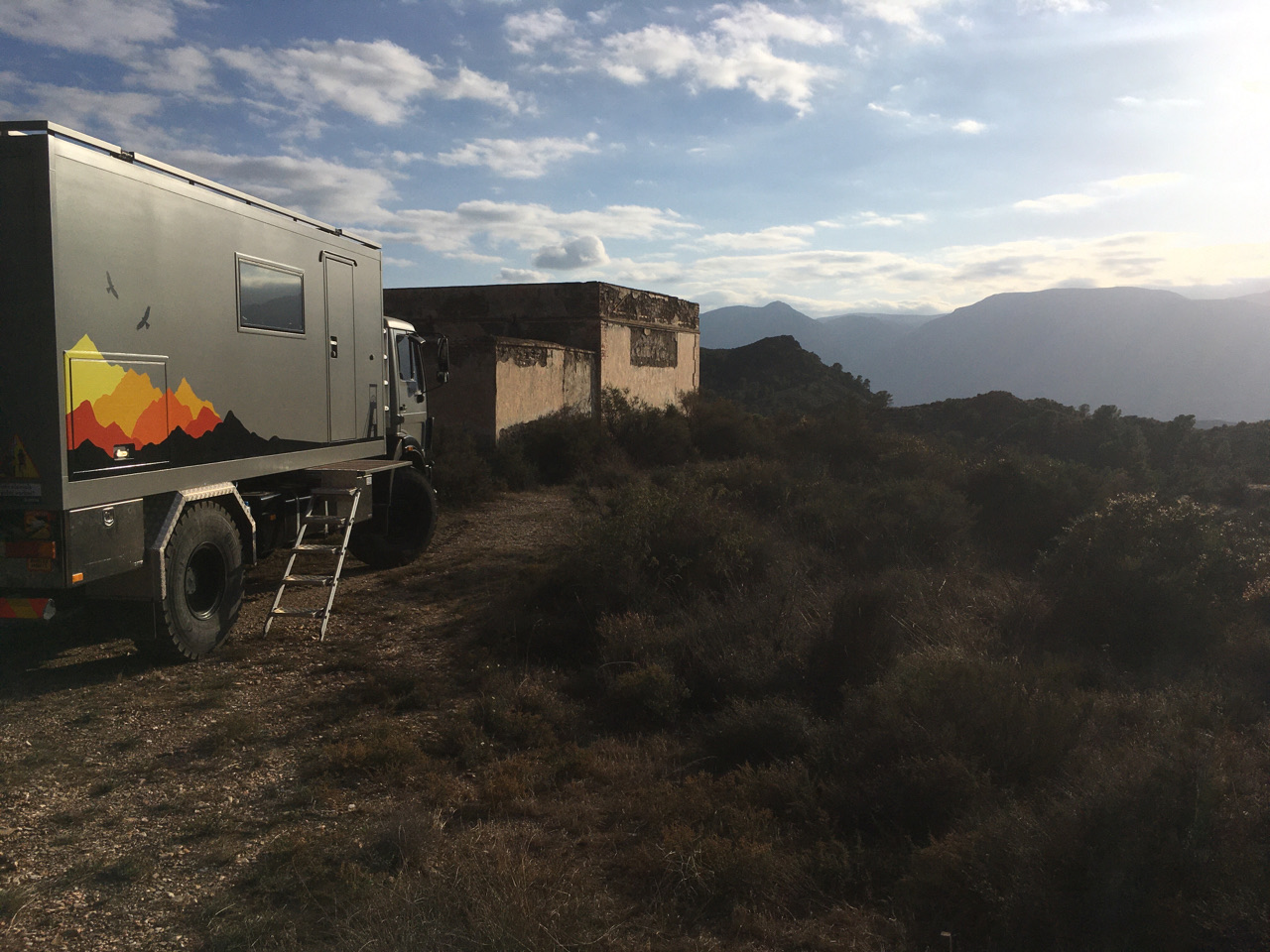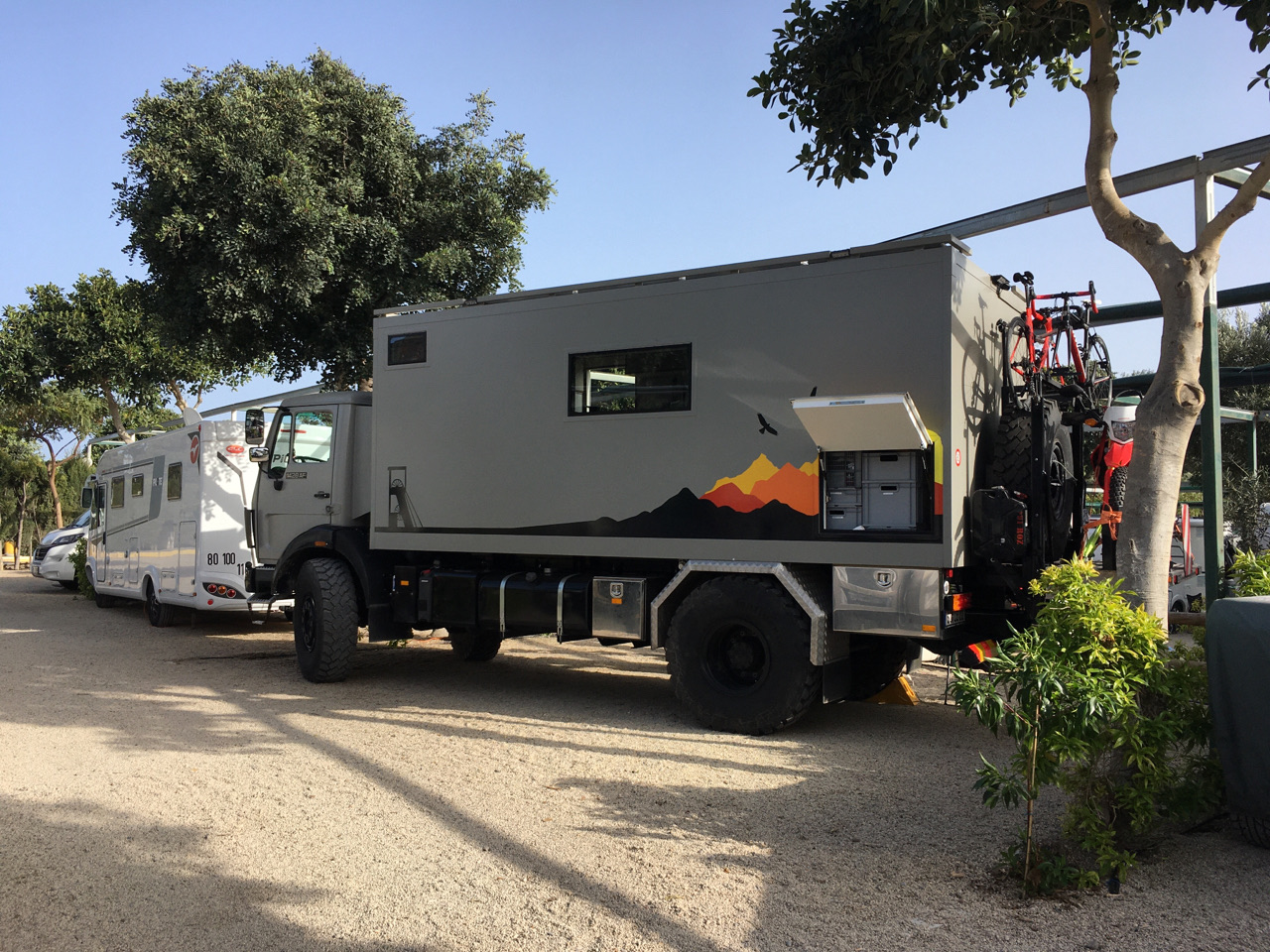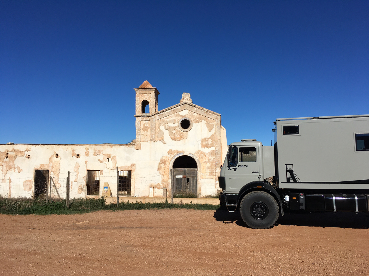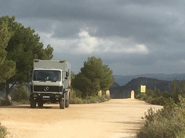 Spanien – Gutes Essen, toller Wein, Sonne und freundliche entspannte Menschen.Wir starten erste einmal im nassen und grauen Aachen, parken über Nacht am Wochenende im Industriegebiet. Näher an die City kamen wir nicht ran – alles Umweltzone.Nach langer Fahrt hatten wir einen sehr schöner und erholsamer Nachmittag in der Keidel Therme in Nähe von Freiburg. Praktischerweise parken wir direkt daneben und haben einen schönen und sehr ruhigen Stellplatz für die NachtTotwinkelaufkleber, in Frankreich Pflicht für uns, haben wir vor der Grenze angeheftet.Nach einer sehr kalten und nebeligen Fahrt am Morgen sind wir nun in Südfrankreich am Mittelmeer angekommen. Ein Stellplatz direkt am Meer inklusive 😎. Wir beschließen noch einen Tag zu bleiben und den nächsten Tag für einen Joggingrunde und einen Strandspaziergang zu nutzen.Nach unzähligen Kreisverkehren und Kurven an der Küste entlang sind wir in Spanien eingetroffen. Auch hier in Nordkatalonien ist es heftig stürmisch und eisig kalt. Aber – die Sonne scheint den ganzen Tag 😎In Peñiscola ist es schon deutlich wärmer und es herrscht nicht so ein rauer Wind. Ein ruhiger und windgeschützter Stellplatz war auch vorhanden. Am nächsten Tag haben wir uns in Peñiscola ein paar alte Steine angesehenDa im Moment das Wetter nicht so gut ist, haben wir die Küste verlassen und haben uns Murcia angesehen. Die Parkgelegenheit ist diese mal nicht schön, aber praktisch und kostenlos. Es ist unglaublich wie viele andere Wohnmobile hier ebenfalls parken. Es sind bestimmt 80-100 😱. Für eine Nacht und um sich die Stadt anzusehen ist es ausreichend.Mirrardor Barrancos de Gebas – ein schöner Stellplatz und wir waren die ganze Zeit alleine. Das hatte aber auch einen Grund: Die Anfahrt war ein kleines Abenteuer. Es hatte die Tage zuvor geregnet und der Schotterweg war mit einer schlammigen Tonerde überzogen, die im Profil klebte, einfach nur klebte. Und dann mit 12t steil bergab auf einem 3 Meter breitem Weg. Augen auf und durch!Wir sind dort auch gewandert. Und hier erkennt man: dies Zeug fiel nicht mal von den Wanderschuhen ab.Probieren geht über Studieren. Wir hatten so viel und auch so unterschiedliches von diesem Ort gehört und wollten uns selbst ein Bild machen. – Playa de Percheles (Schlangenbucht)- aber nur aus dieser Perspektive schön. Wir standen ganz oben auf dem Felsen. Traumhafte Aussicht aufs Meer. Der Blick in die andere Richtung: Camper, gaaanz viele deutsche Camper. Aber wir haben nette Leute getroffen.Schlangenbucht Foto 1 für Instagram.Schlangenbucht Foto 2 für InstagramSchlangenbucht aus einer Nicht-Instagram-PerspektiveNach ein paar herrlichen Tagen am Playa Pecheles ging es heute weiter Richtung Almería. Auf dem Weg haben wir einmal eine notwendige LKW Wäsche gemacht, um das ganze Salz zu entfernen.Im Naturschutzgebiet Cabo de Gata haben wir uns mal zur Abwechslung einen richtigen Campingplatz gesucht. Ein bisschen quer reingestellt aber Länge und Höhe waren ausreichend. Der Balken über dem Dach hatte einen ziemlich harten Schatten geworfen, so dass wir sehr wenig Solareinspeisung hatten, trotz toller Sonne.Der Campingplatz ist schön und sehr gepflegt und hat den großen Vorteil, dass man ordentlich Wäsche waschen kann 😀 Heute stand eine ziemlich lange aber sehr schöne Wanderung nach San José auf dem Programm. Hin an der Küste entlang und zurück durch das Hinterland.Auf dem Weg nach Almería haben wir noch eine Besichtigungstour in die ehemaligen Minen gemacht. Nach einer netten Schotterstrecke konnten wir in der Nähe der Minen parken. Na, wer kennt diese Kulisse noch? – Kultfilm der 80’ger. Da mussten wir anhalten. Das ging nicht anders. Must-Have-Photo!In Almería ist es tagsüber so warm, dass man fast vergessen kann, dass es eigentlich erst Februar ist. Almería hat zwar keine nennenswerten Sehenswürdigkeiten, aber dafür lässt es sich hier ganz hervorragend leben.Heute haben wir den Tag zu einer Radtour zu den Salinas genutzt und ein paar Flamingos in der Ferne gesehen. Markttag, eine Portion Churros durfte dabei nicht fehlen. Und obwohl wir schon Wochen in diesen Land sind, sind wir genau jetzt -wirklich und endlich- „in Spanien angekommen“.Nach den entspannten Tagen am Meer zieht es uns jetzt wieder in die Berge. Wir sind noch einen Tag hier geblieben, da die sehr schöne und ganz wenig befahrene Straße uns geradezu dazu eingeladen hat, sie mal hoch und runter zu fahren – mit dem Radl. Schön wars.Trevélez Nach einer sehr schönen, aber auch anstrengenden Panoramafahrt durch die Höhen der Alpujarras sind wir im höchsten Dorf Spaniens auf 1500m in der Sierra Nevada angekommen. Wir hatten uns zu anderen Campern auf den Marktplatz gestellt. Als wir aus der Stadt zurück kamen, waren alle weg. Fragezeichen in unseren Gesichtern. Aber dann haben wir mal auf die Schilder geschaut 🙂 Nächster Tag: Markttag ab 08:00 Uhr. Okay, wenn in Deutschland ab 8 Uhr Markt ist, werden die Stände bereits um 5:30 aufgestellt. Ich kennen das, habe früher meinem Onkel öfter geholfen. Aber in Spanien? Wir sind einfach früh aufgestanden und so gegen 7:15Uhr abgefahren. Da wurde gerade der erste Stand aufgebaut.Nach dem eisigen Trevélez freuen wir uns nun auf das etwas wärmere und berühmte Granada. In der Nähe von Städten sind Campingplätze praktisch, meist zentral und gut erreichbar gelegen, bieten Sicherheit und Infrastruktur. Klasse als Startpunkt für die Stadtbesichtigungen. Und zur Stadtbesichtigung mitten in die City geht’s mit dem Motorrad. In Spanien ideal. Da kann man direkt neben den wichtigsten Sehenswürdigkeiten und Lokalen parken.Heute ging es bei bestem Wetter zur Alhambra und nach Granada. Sooo sehenswert und schön. Nachmittags besuchten wir noch einmal das wunderschöne und quirlige Granada. Nur die vielen Einbahnstraßen machten es nicht unbedingt übersichtlich und die Navisoftware im Handy zeigt einem ja auch nur 1. die Routen für’s Auto und 2. nur 