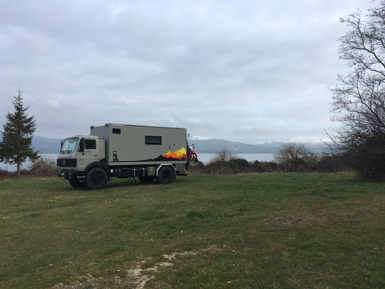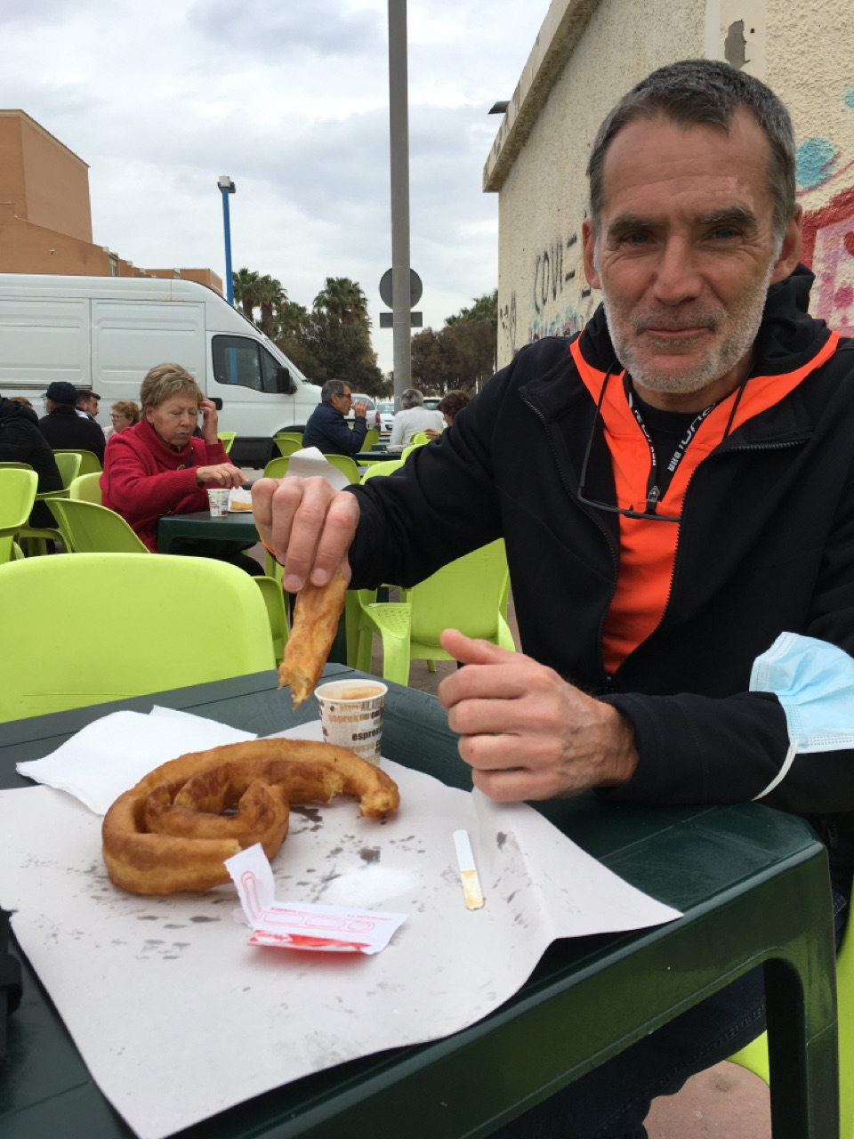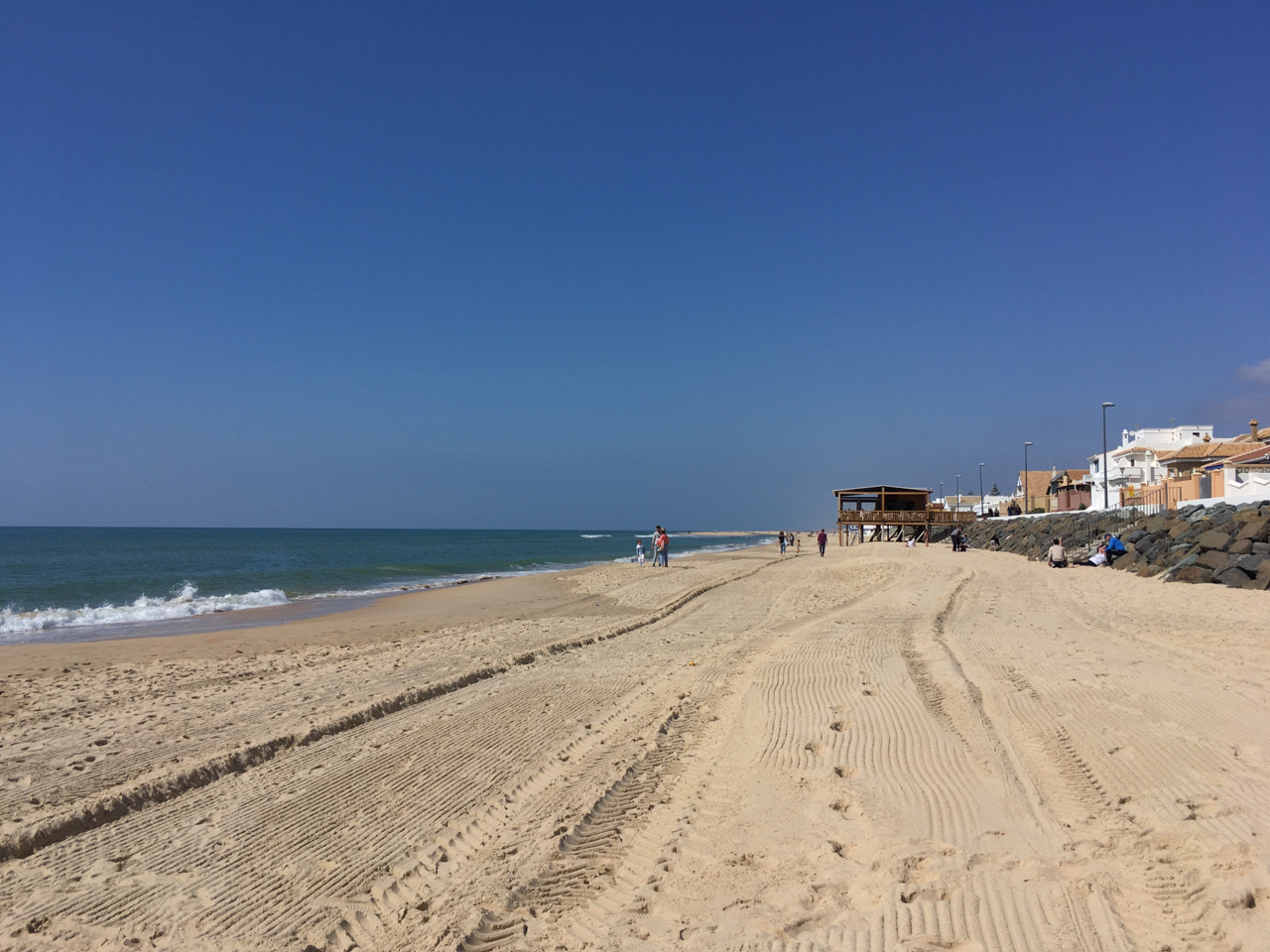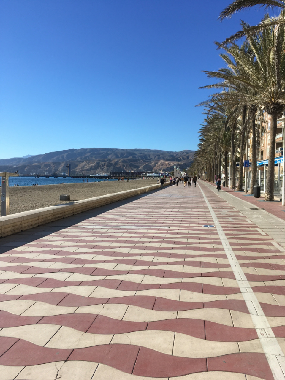 Spanien – Gutes Essen, toller Wein, Sonne und freundliche entspannte Menschen.Wir starten erste einmal im nassen und grauen Aachen, parken über Nacht am Wochenende im Industriegebiet. Näher an die City kamen wir nicht ran – alles Umweltzone.Nach langer Fahrt hatten wir einen sehr schöner und erholsamer Nachmittag in der Keidel Therme in Nähe von Freiburg. Praktischerweise parken wir direkt daneben und haben einen schönen und sehr ruhigen Stellplatz für die NachtTotwinkelaufkleber, in Frankreich Pflicht für uns, haben wir vor der Grenze angeheftet.Nach einer sehr kalten und nebeligen Fahrt am Morgen sind wir nun in Südfrankreich am Mittelmeer angekommen. Ein Stellplatz direkt am Meer inklusive 😎. Wir beschließen noch einen Tag zu bleiben und den nächsten Tag für einen Joggingrunde und einen Strandspaziergang zu nutzen.Nach unzähligen Kreisverkehren und Kurven an der Küste entlang sind wir in Spanien eingetroffen. Auch hier in Nordkatalonien ist es heftig stürmisch und eisig kalt. Aber – die Sonne scheint den ganzen Tag 😎In Peñiscola ist es schon deutlich wärmer und es herrscht nicht so ein rauer Wind. Ein ruhiger und windgeschützter Stellplatz war auch vorhanden. Am nächsten Tag haben wir uns in Peñiscola ein paar alte Steine angesehenDa im Moment das Wetter nicht so gut ist, haben wir die Küste verlassen und haben uns Murcia angesehen. Die Parkgelegenheit ist diese mal nicht schön, aber praktisch und kostenlos. Es ist unglaublich wie viele andere Wohnmobile hier ebenfalls parken. Es sind bestimmt 80-100 😱. Für eine Nacht und um sich die Stadt anzusehen ist es ausreichend.Mirrardor Barrancos de Gebas – ein schöner Stellplatz und wir waren die ganze Zeit alleine. Das hatte aber auch einen Grund: Die Anfahrt war ein kleines Abenteuer. Es hatte die Tage zuvor geregnet und der Schotterweg war mit einer schlammigen Tonerde überzogen, die im Profil klebte, einfach nur klebte. Und dann mit 12t steil bergab auf einem 3 Meter breitem Weg. Augen auf und durch!Wir sind dort auch gewandert. Und hier erkennt man: dies Zeug fiel nicht mal von den Wanderschuhen ab.Probieren geht über Studieren. Wir hatten so viel und auch so unterschiedliches von diesem Ort gehört und wollten uns selbst ein Bild machen. – Playa de Percheles (Schlangenbucht)- aber nur aus dieser Perspektive schön. Wir standen ganz oben auf dem Felsen. Traumhafte Aussicht aufs Meer. Der Blick in die andere Richtung: Camper, gaaanz viele deutsche Camper. Aber wir haben nette Leute getroffen.Schlangenbucht Foto 1 für Instagram.Schlangenbucht Foto 2 für InstagramSchlangenbucht aus einer Nicht-Instagram-PerspektiveNach ein paar herrlichen Tagen am Playa Pecheles ging es heute weiter Richtung Almería. Auf dem Weg haben wir einmal eine notwendige LKW Wäsche gemacht, um das ganze Salz zu entfernen.Im Naturschutzgebiet Cabo de Gata haben wir uns mal zur Abwechslung einen richtigen Campingplatz gesucht. Ein bisschen quer reingestellt aber Länge und Höhe waren ausreichend. Der Balken über dem Dach hatte einen ziemlich harten Schatten geworfen, so dass wir sehr wenig Solareinspeisung hatten, trotz toller Sonne.Der Campingplatz ist schön und sehr gepflegt und hat den großen Vorteil, dass man ordentlich Wäsche waschen kann 😀 Heute stand eine ziemlich lange aber sehr schöne Wanderung nach San José auf dem Programm. Hin an der Küste entlang und zurück durch das Hinterland.Auf dem Weg nach Almería haben wir noch eine Besichtigungstour in die ehemaligen Minen gemacht. Nach einer netten Schotterstrecke konnten wir in der Nähe der Minen parken. Na, wer kennt diese Kulisse noch? – Kultfilm der 80’ger. Da mussten wir anhalten. Das ging nicht anders. Must-Have-Photo!In Almería ist es tagsüber so warm, dass man fast vergessen kann, dass es eigentlich erst Februar ist. Almería hat zwar keine nennenswerten Sehenswürdigkeiten, aber dafür lässt es sich hier ganz hervorragend leben.Heute haben wir den Tag zu einer Radtour zu den Salinas genutzt und ein paar Flamingos in der Ferne gesehen. Markttag, eine Portion Churros durfte dabei nicht fehlen. Und obwohl wir schon Wochen in diesen Land sind, sind wir genau jetzt -wirklich und endlich- „in Spanien angekommen“.Nach den entspannten Tagen am Meer zieht es uns jetzt wieder in die Berge. Wir sind noch einen Tag hier geblieben, da die sehr schöne und ganz wenig befahrene Straße uns geradezu dazu eingeladen hat, sie mal hoch und runter zu fahren – mit dem Radl. Schön wars.Trevélez Nach einer sehr schönen, aber auch anstrengenden Panoramafahrt durch die Höhen der Alpujarras sind wir im höchsten Dorf Spaniens auf 1500m in der Sierra Nevada angekommen. Wir hatten uns zu anderen Campern auf den Marktplatz gestellt. Als wir aus der Stadt zurück kamen, waren alle weg. Fragezeichen in unseren Gesichtern. Aber dann haben wir mal auf die Schilder geschaut 🙂 Nächster Tag: Markttag ab 08:00 Uhr. Okay, wenn in Deutschland ab 8 Uhr Markt ist, werden die Stände bereits um 5:30 aufgestellt. Ich kennen das, habe früher meinem Onkel öfter geholfen. Aber in Spanien? Wir sind einfach früh aufgestanden und so gegen 7:15Uhr abgefahren. Da wurde gerade der erste Stand aufgebaut.Nach dem eisigen Trevélez freuen wir uns nun auf das etwas wärmere und berühmte Granada. In der Nähe von Städten sind Campingplätze praktisch, meist zentral und gut erreichbar gelegen, bieten Sicherheit und Infrastruktur. Klasse als Startpunkt für die Stadtbesichtigungen. Und zur Stadtbesichtigung mitten in die City geht’s mit dem Motorrad. In Spanien ideal. Da kann man direkt neben den wichtigsten Sehenswürdigkeiten und Lokalen parken.Heute ging es bei bestem Wetter zur Alhambra und nach Granada. Sooo sehenswert und schön. Nachmittags besuchten wir noch einmal das wunderschöne und quirlige Granada. Nur die vielen Einbahnstraßen machten es nicht unbedingt übersichtlich und die Navisoftware im Handy zeigt einem ja auch nur 1. die Routen für’s Auto und 2. nur 