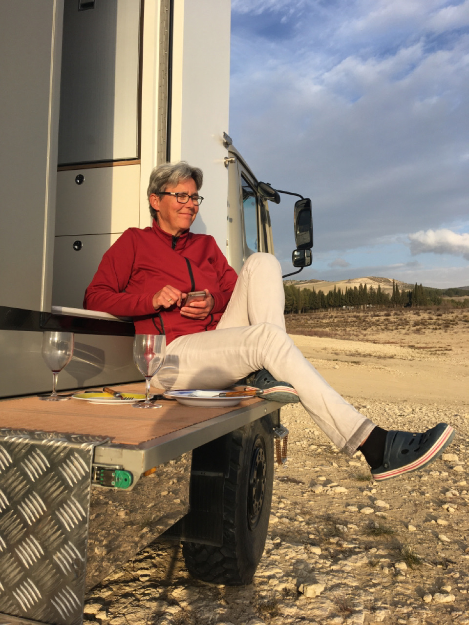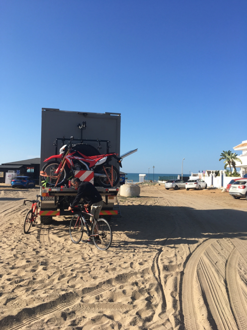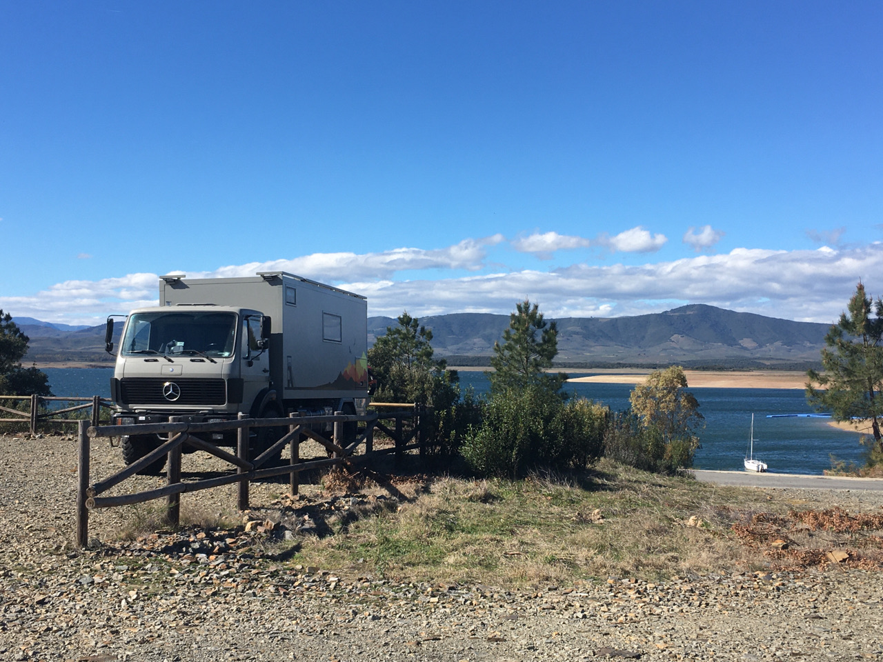 Runter von den Bergen an den Strand. Hier ist es heftig windig und wir stehen an einem coolen Surf-Spot. Diese Aussicht zum Frühstück unddann noch frisch gebackenes Brot. Über Cadiz geht es nach Sevilla. Wir parken wieder außerhalb, hier an einem Hafen und fahren mit dem Krad rein.El Rocio – die SandstadtIn der ganzen Stadt gibt es keine asphaltierten Straßen. Dafür aber Sand, Sand, Sand – und Pferde.Von der Sandstadt an den Strand.Heute mal wieder eine lange Sporteinheit, Koppeltraining.Hier gibt es einen sehr schönen Nationalpark, den Parque Nationale Doñana. Sand und Kiefern und in der Ferne das Meer. Allabendliche MuschelsucherDa das Wetter deutlich schlechter geworden ist und wohl so bald auch nicht wieder sommerlich wird, haben wir beschlossen zunächst mal nicht an die Küste Portugals zu fahren, sondern uns stattdessen allmählich auf den Weg nach Norden zu machen. In Alange, an einem Stausee, haben wir dann einen Platz für die Nacht gefunden. Neben unserm Stellplatz gab es (natürlich) auch eine Bar wo wir (wieder mal) sehr gut gegessen habenStörche sieht man im Süden Spaniens viele. Hier haben wir sie auch noch laut Klappern hören.Wir fahren weiter Richtung Salamanca auf der Ruta de la Plata. Zum Übernachten haben wir einen Abstecher zu einem See gemacht mit herrlicher Aussicht. Nur kalt und stürmisch ist es leider. Trotzdem ist es traumhaft schön hier.Salamanca ist vom römischen Baustil beeinflusst und hat eine sehr alte und berühmte Universität aus dem 12. Jahrhundert. Bei schönem warmen Wetter eine tolle Stadt. Heute ist es sehr kalt. Dennoch tummeln sich viele Leute in den Gassen. Bevor es zur Stadtbesichtigung geht ist erstmal noch etwas Arbeitseinsatz gefragt. Der LKW muss geschmiert werden und die Bettwäsche sollte eine Wäsche bekommen. Leider hat der Trockner keine gute Arbeit gemacht und die Wäsche musste ein bisschen nachgetrocknet werden. Danach aber dann ab in diese schöne Stadt. Brr, ist das heute kalt hier 🥶Embals de EbroEin paar Tage und Stationen später irgendwo in Frankreich.Wir hatten den Tipp gekriegt, dass ein Kilometer weiter heute Bio-Bauernmarkt ist. Also haben wir mal ein paar leckere Dinge gekauft.Noch tiefer in Frankreich.In einer Region mit riesigen, künstlich angelegten Seen. Klasse auch zum Radfahren.